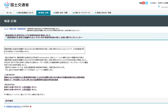 国土交通省の「建設現場の生産性を向上する革新的技術」に選定