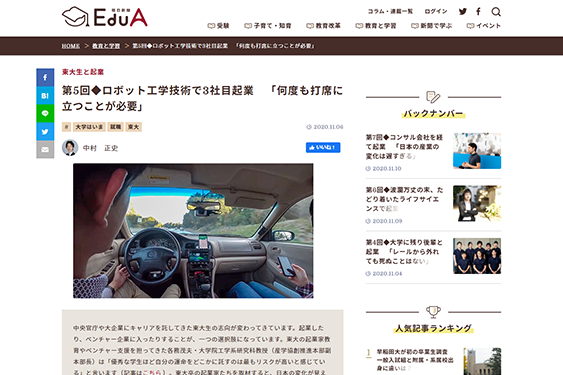 朝日新聞の教育情報紙「EduA」のWEBにARAV設立経緯について掲載
